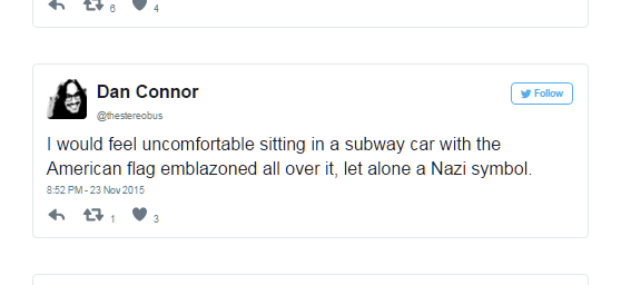 His comfort doesn't override our rights to paint an American Flag all over a subway car.