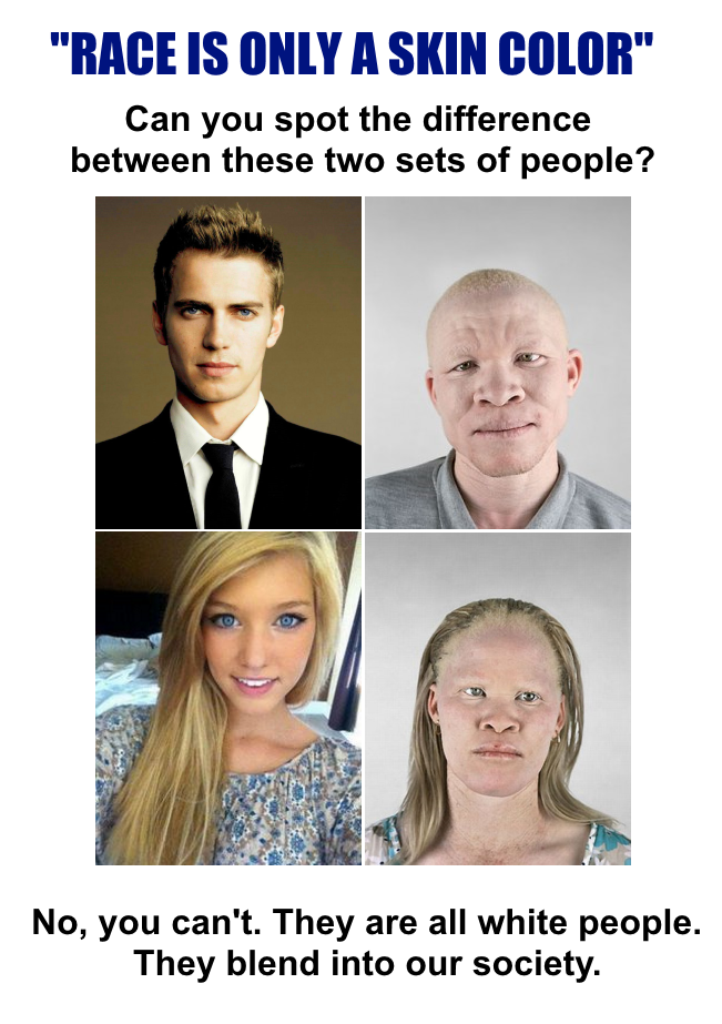 Indoctrinated buffoons spew their implanted knee-jerk rhetoric. The traitors seeking to destroy the USA and all of Western civilization spread propaganda to brainwash those buffoons. Non-indoctrinated folks obviously notice skin pigmentation levels but do not judge others merely by that "color" crap. Nope.